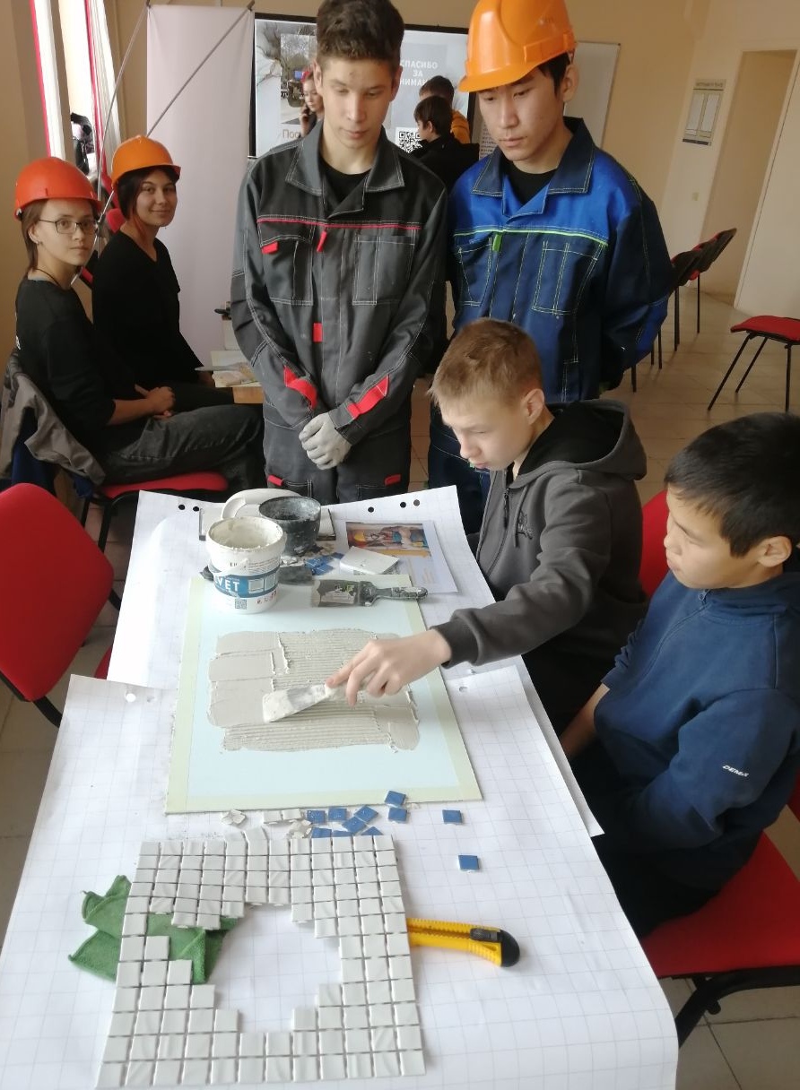 Мастер-класс по нанесению декоративных покрытий Мозайка из плитки "Новогодняя игрушка" демонстрировали студенты группы МОСДР-24-1 Климов Илья м Цыдыпов Мигмар под руководством мастера производственного обучения-Михеевой Варвары Викторовны.