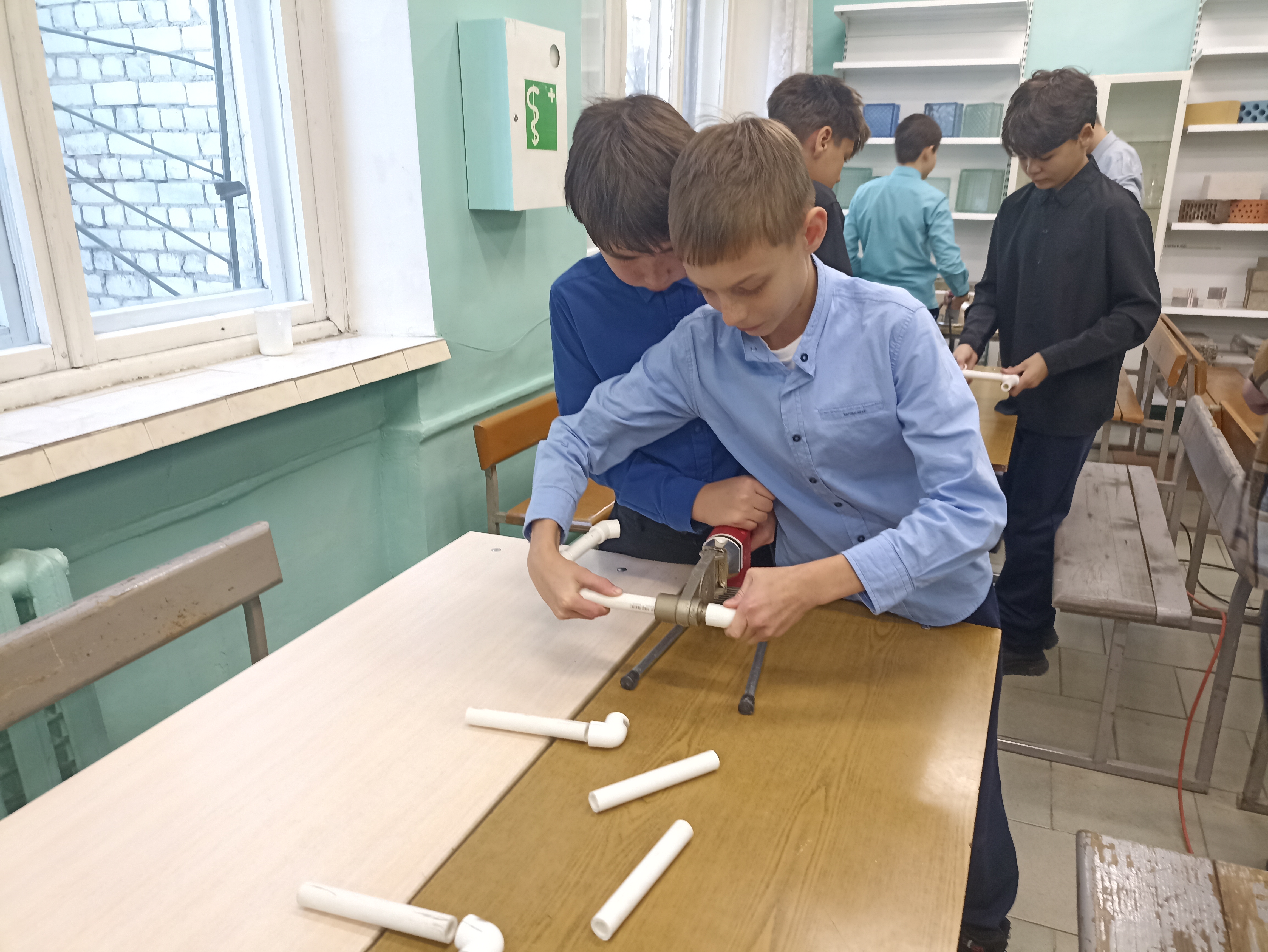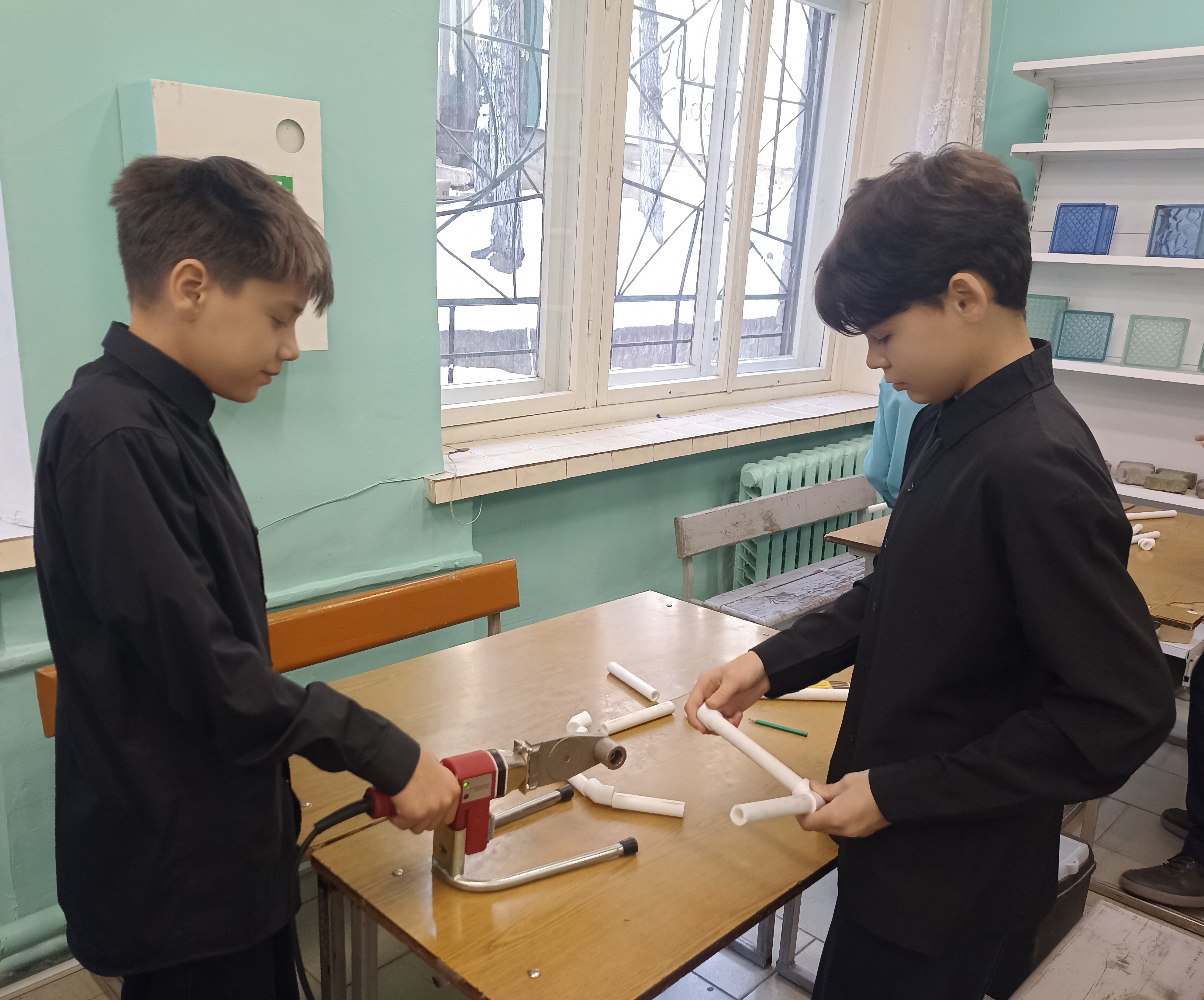 Ребята с интересом приняли участие в профессиональных пробах по изготовлению полотенцесушителей из полипропиленовых труб.