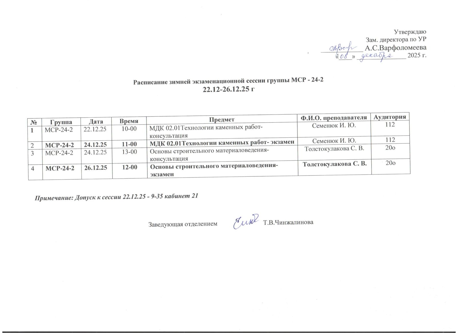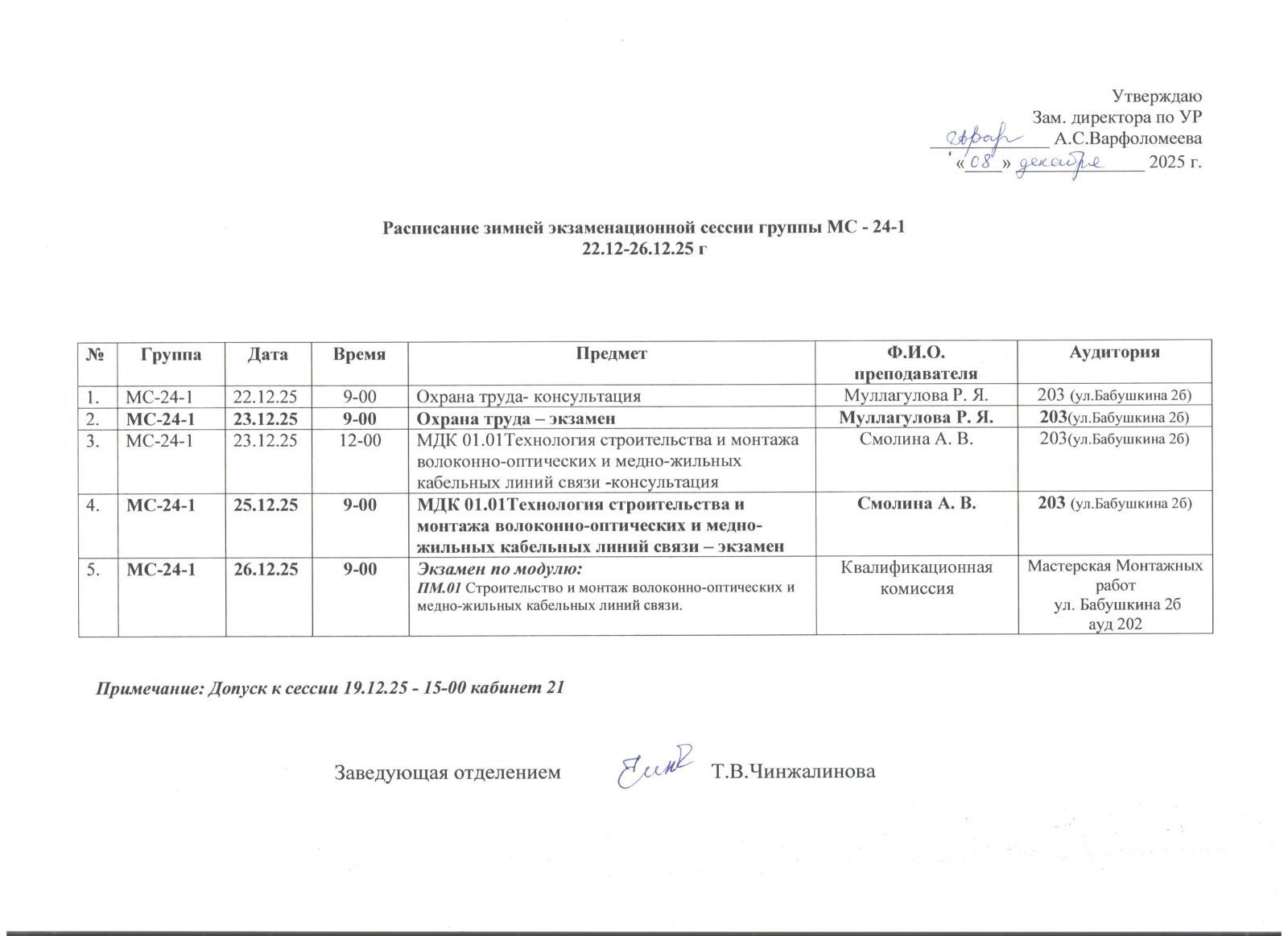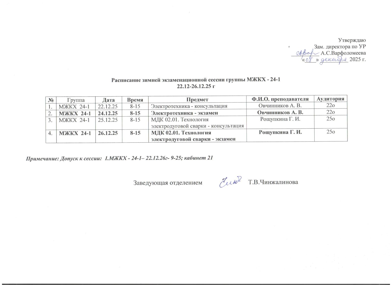 Расписание зимней экзаменационной сессии на 2025-2026 уч.год: