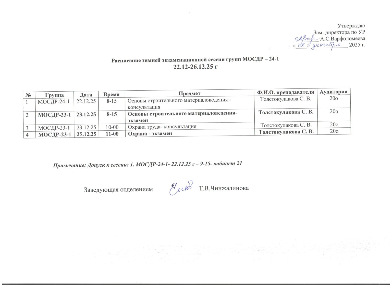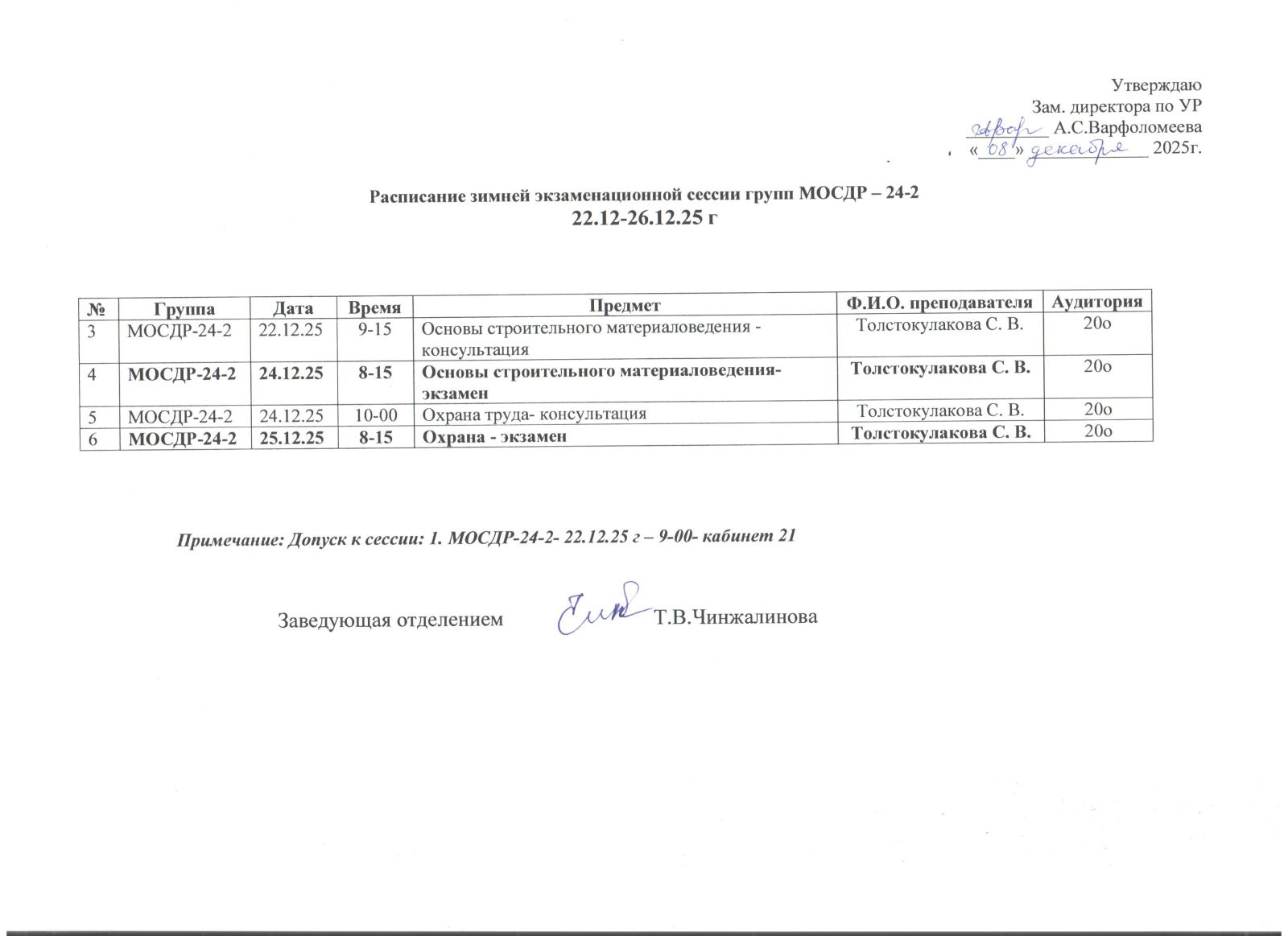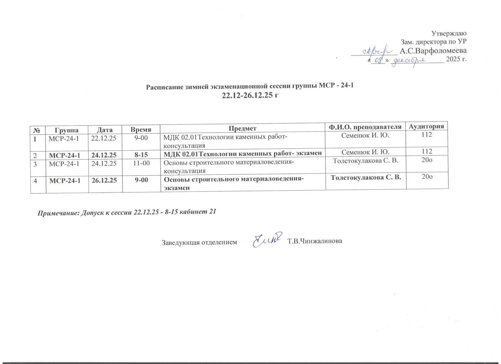Расписание зимней экзаменационной сессии на 2025-2026 уч.год: