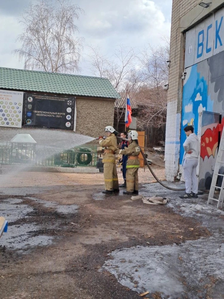 В завершении первокурсникам было предложено практическое занятие по тушению предполагаемого пожара. Три добровольца сменили обычную одежду на экипировку спасателя и приступили к выполнению поставленной задачи.