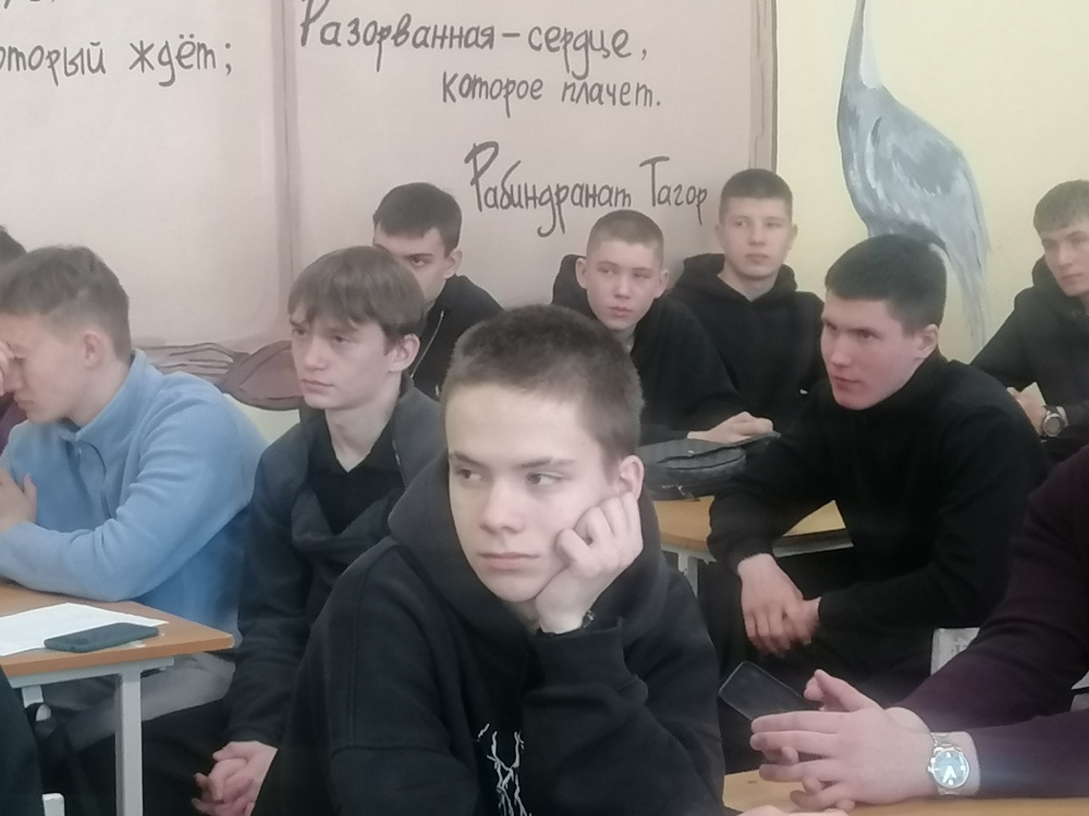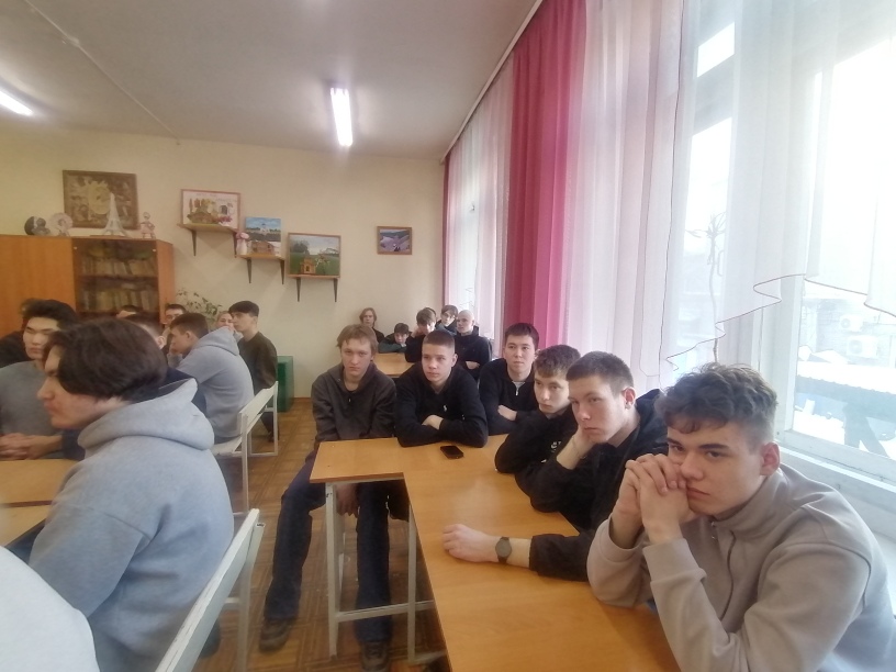 В ноябре он вёл разговор с первокурсниками, участниками проекта «Технологии меняют жизнь», а в этот январский день, во время классного часа, Пётр Иванович встретился с юношами двух групп: СДМ – 24 – 1 и СДМ – 25 – 1. Узнав, что ребята - будущие специалисты по дорожно – строительным машинам, наш гость оживился и искренне одобрил их выбор.
