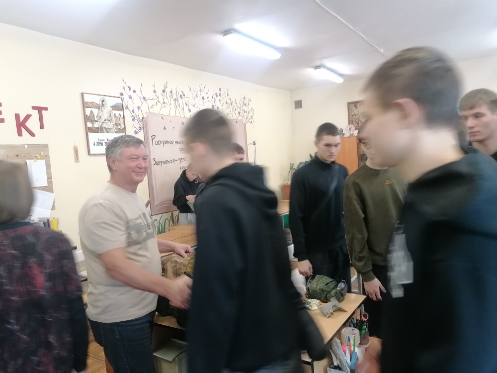 Традиционный рюкзак, современный, с полным набором новых технических и практических средств вновь гордо красовался на преподавательском столе. Петр Иванович, сказав несколько слов о себе, сразу приступил к делу. Показал жгуты, «обозбол», кровоостанавливающие средства… Рассказал о том, как пользоваться. Также студенты узнали об изобретении жителя Забайкалья, которое помогает военным хирургам спасать жизни на передовой.