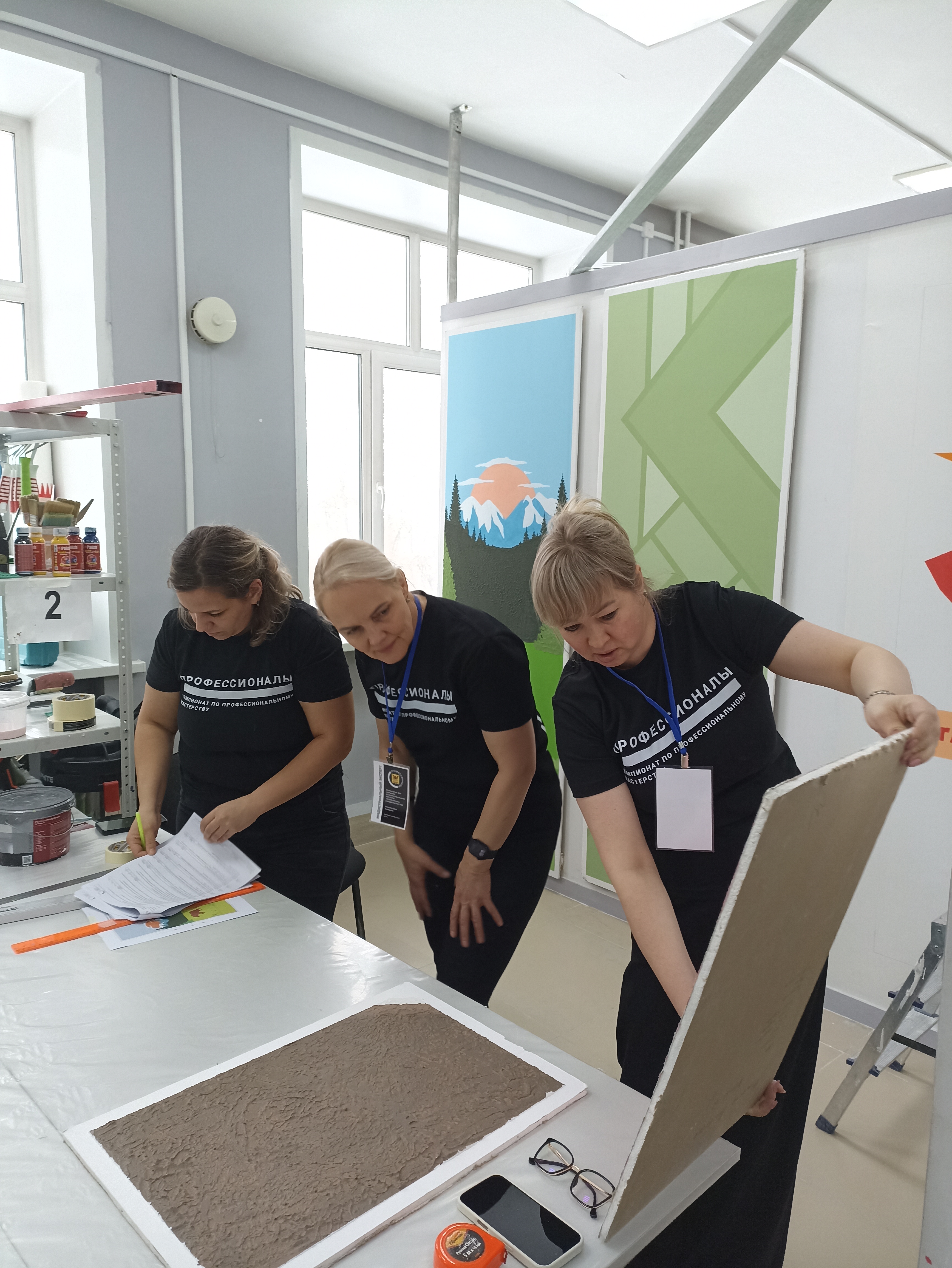 Четыре дня на площадке кипела работа, состязались студенты 2 и 3 курса, обучающиеся по специальности «Архитектура» и по профессии «Мастер отделочных строительных и декоративных работ»: Петренко Полина, Буторин Андрей, Фильшина Анастасия – студенты гр.АРХ-23-1; Мишкилеева Дарья, Армянинова Надежда – студенты гр. МОСДР-24-2шм.