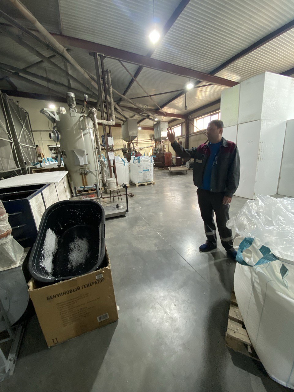 Для всех нас это было второе знакомство с промышленным производством. На предприятии в качестве экскурсовода, нас сопровождали: мастер цеха по производству пенополистирола Скороходов Евгений Владимирович и мастер цеха по производству СИП-панелей Елисафенко Денис Михайлович.